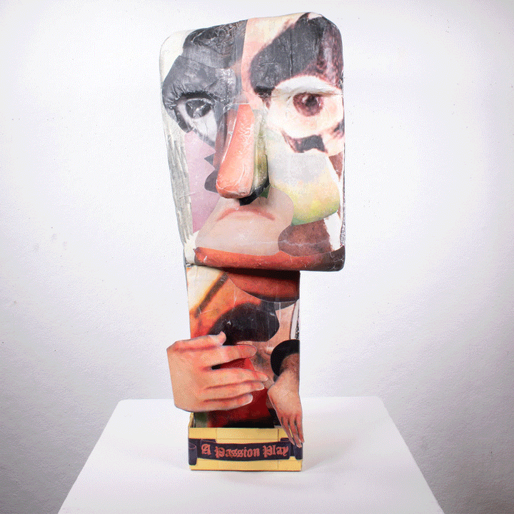 A sculptural work that brings a collage practice into the round. This work plays off the idea of the "man's best friend” being dogs. Though even here certain dogs are held in an effeminate light, such as poodles. Man’s best friend as a motto soon falls apart and reveals that maybe we need to be more like cats.