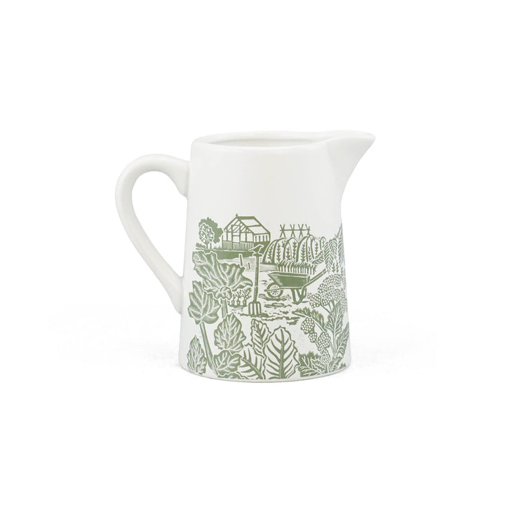 The Woodland Green jug by Kate Heiss captures the quiet richness of the forest floor — acorns, thistles, and foliage rendered in her signature hand-printed style. Its deep green glaze evokes the stillness of woodland light, grounding any table or shelf with natural warmth.