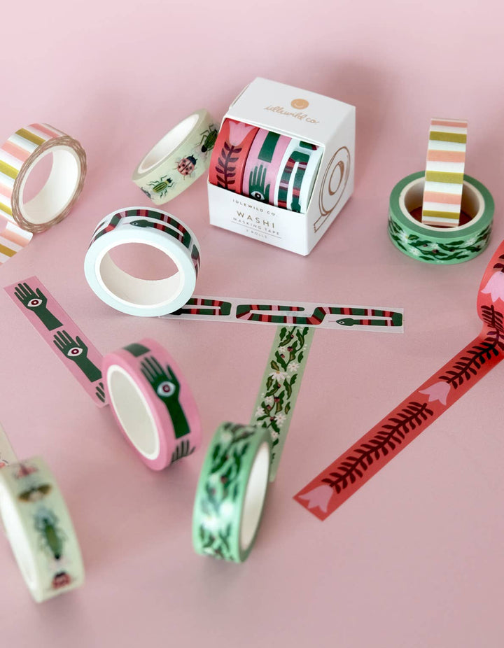 Bring a touch of handmade charm to your creative projects with the Folk Art Prints Washi Tape Set from Idlewild Co. This coordinating trio of illustrated paper tapes features vibrant, folk-inspired patterns — from garden florals to playful motifs — perfect for decorating journals, planners, letters, or gift wrap.