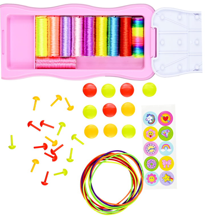 Create colorful, handwoven bracelets to share with friends using this easy-to-use Friendship Bracelet Kit. The portable bracelet loom and step-by-step instructions make it simple to design unique patterns and styles — perfect for craft days, parties, or quiet creative time.
