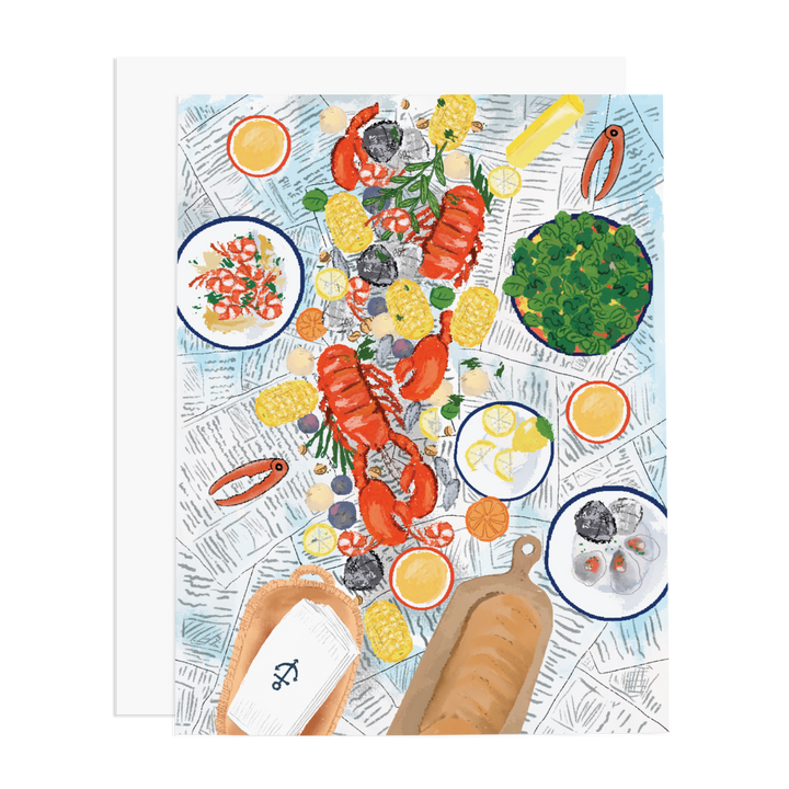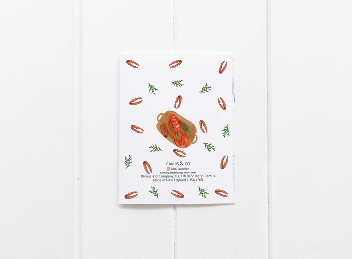 Nothing says New England like a lobster bake by the shore. This card from Ramus & Co. brings that easy coastal warmth to any celebration—whether you’re inviting, thanking, or just sending a little love. Printed on bright white stock, blank inside, and paired with an easy-seal envelope.