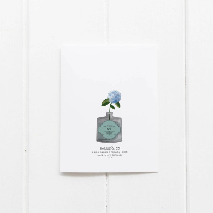 A pair of rain boots, a bundle of blue hydrangeas — and that unmistakable New England charm. A Ramus & Co. classic and longtime favorite, this card fits any occasion with effortless grace. Printed on bright white stock, blank inside, and ready for your note. Includes an easy-seal envelope.