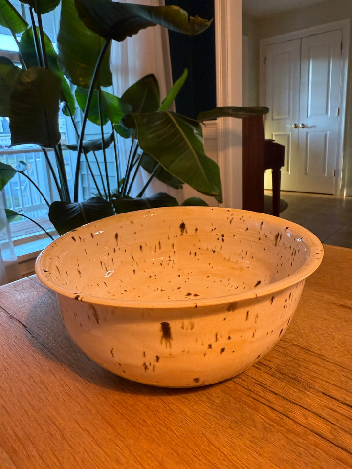 This small serving bowl is wheel thrown and finished in a soft birch glaze that highlights the clay beneath. The silhouette is simple and warm which makes it easy to use and easy to love. Each bowl shows subtle variation from the making and firing. Crafted in Freeport, Maine by Ashley of AK Pottery.