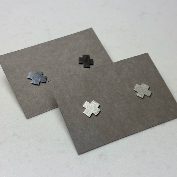 Simple, elegant, and full of intention. Shelby Goldsmith’s Small X Studs are hand-stamped and finished in oxidized or polished sterling silver. Inspired by her modern mourning jewelry series, these understated earrings carry quiet strength and subtle symbolism.