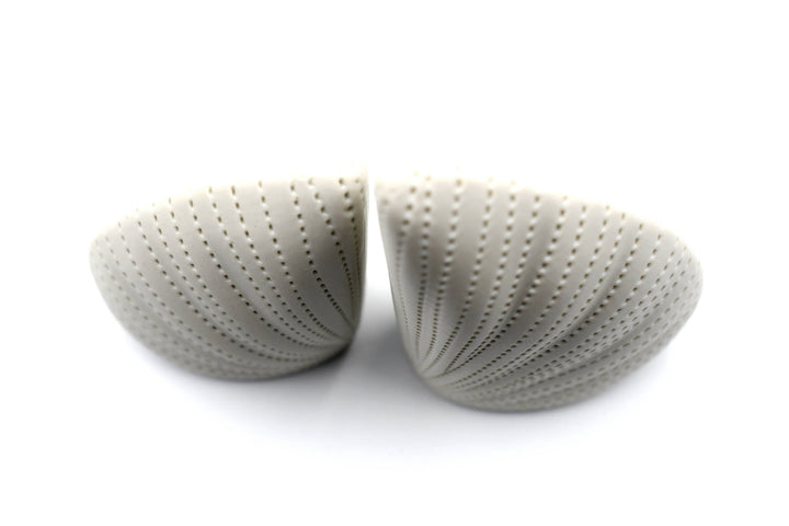 Bring a touch of coastal simplicity to your table with this handcrafted porcelain salt and pepper shaker set. Inspired by the textures and forms of the ocean, each piece features a subtly rugged surface that feels both refined and natural. Shaped by skilled artisans, no two sets are exactly alike—each one carrying its own quiet character and sense of craft.