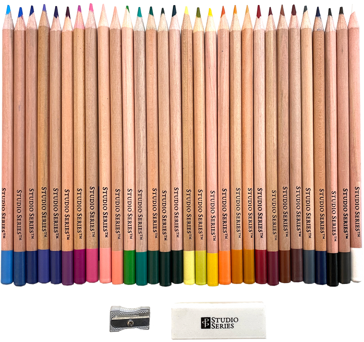 Bring depth and color to your drawings with this deluxe Studio Series Colored Pencil Set. Each pencil features a soft-core lead for smooth application, rich pigment, and effortless blending — perfect for layering, shading, and creating luminous artwork.