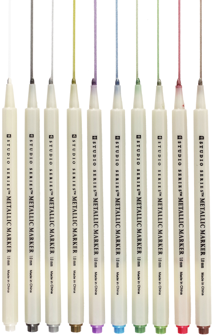 Add a luminous touch to your art and lettering with this Studio Series Metallic Marker Set. Designed to shine on both dark and light surfaces, these rich metallic inks glide smoothly and deliver brilliant, fade-resistant color. Ideal for journaling, scrapbooking, greeting cards, and creative projects that call for a little extra sparkle.