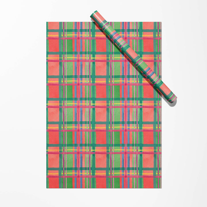 Watercolor Holiday Plaid Gift Wrap — Traditional Holiday - Set of 3 Sheets